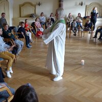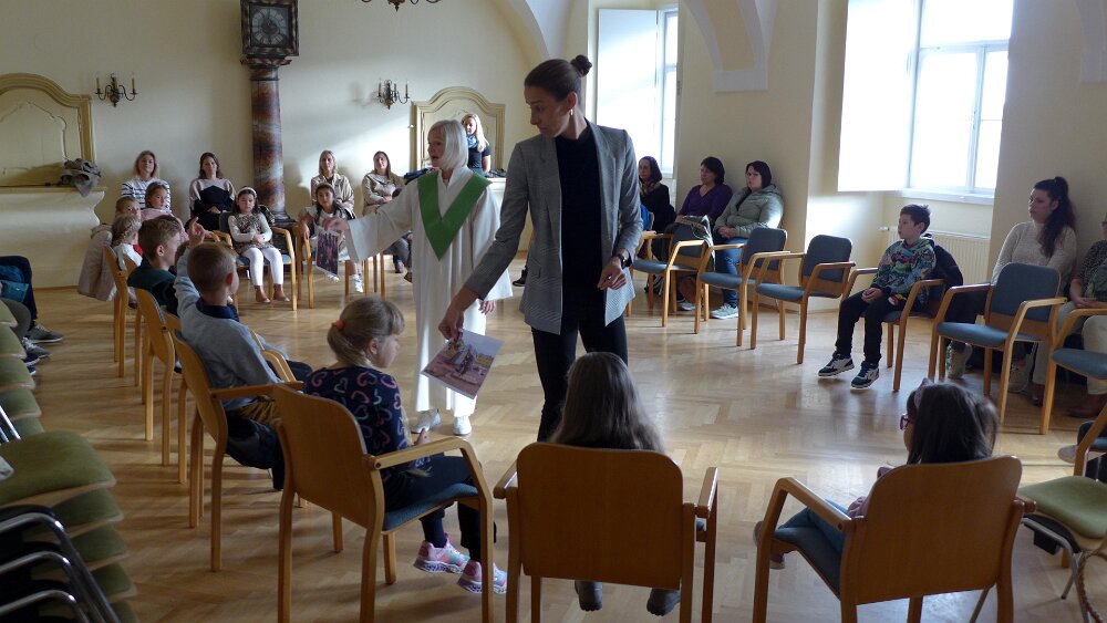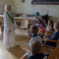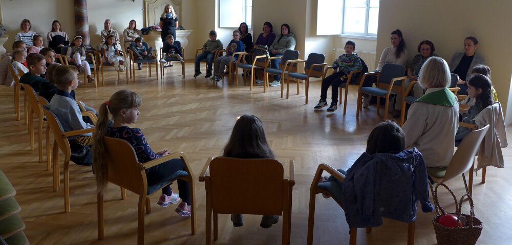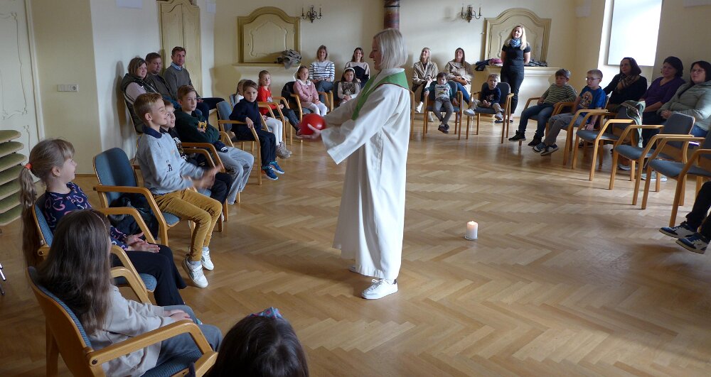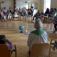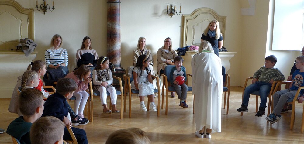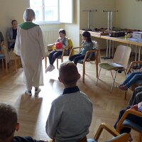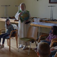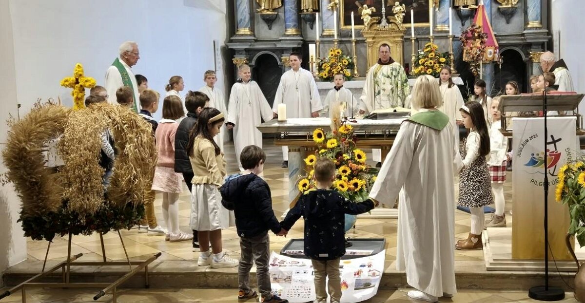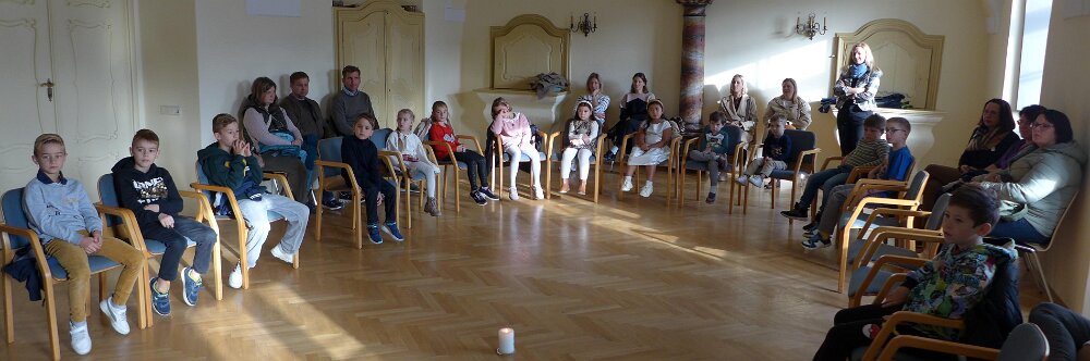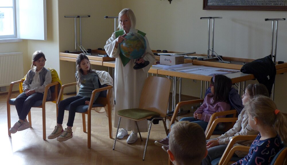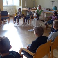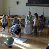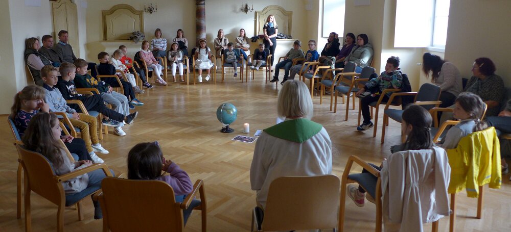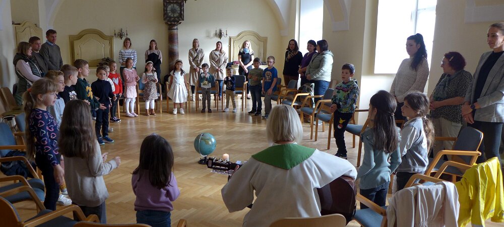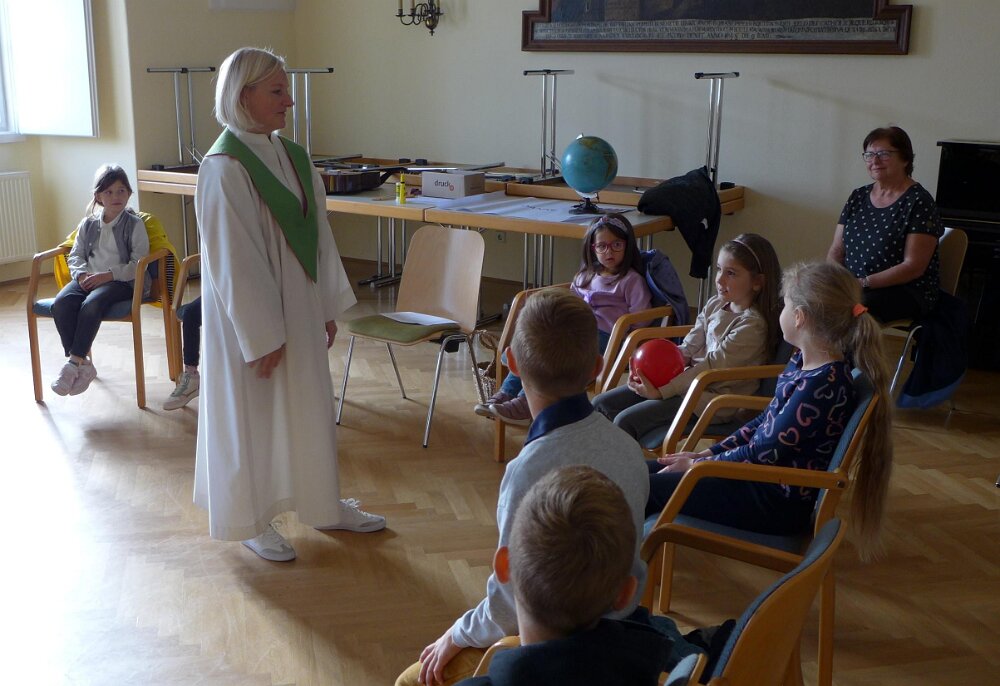 Im Kindergottesdienst überlegten wir, wofür wir dankbar sein können. Wir dachten auch an die armen Menschen im Südsudan, die heuer Beispielland für die Weltmission sind. Mit ihnen wollen wir verbunden sein, an sie denken, für sie beten und zugleich dankbar sein, dass es uns gut geht. Anschließend gestalteten wir eine Collage mit Bildern, für die wir dankbar sind.