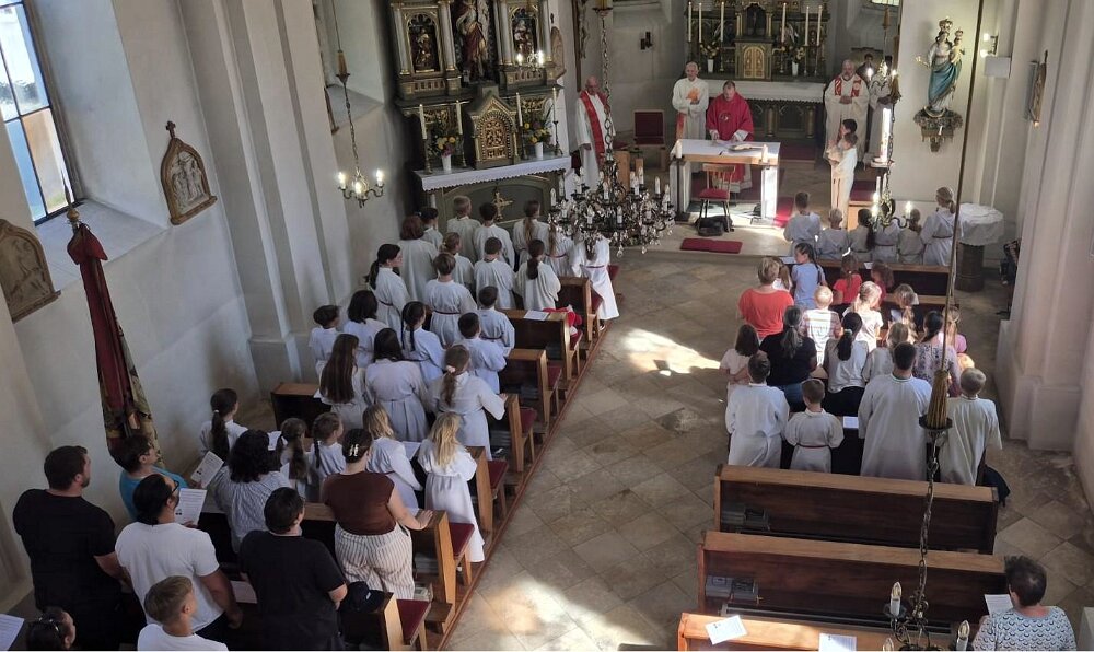 Am 20. September machten sich zehn Ministrantinnen und Ministranten aus der Pfarre auf den Weg nach Deutsch Tschantschendorf zum Mini- & Jungschartag. Zuerst wurde gemeinsam eine heilige Messe gefeiert, die von den Kindern und Jugendlichen gestaltet wurde. Danach gab es Spiele, Bastelstationen und natürlich auch eine Hüpfburg. Nach einem lustigen Nachmittag gab es für alle noch eine Stärkung.