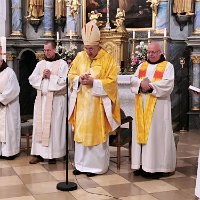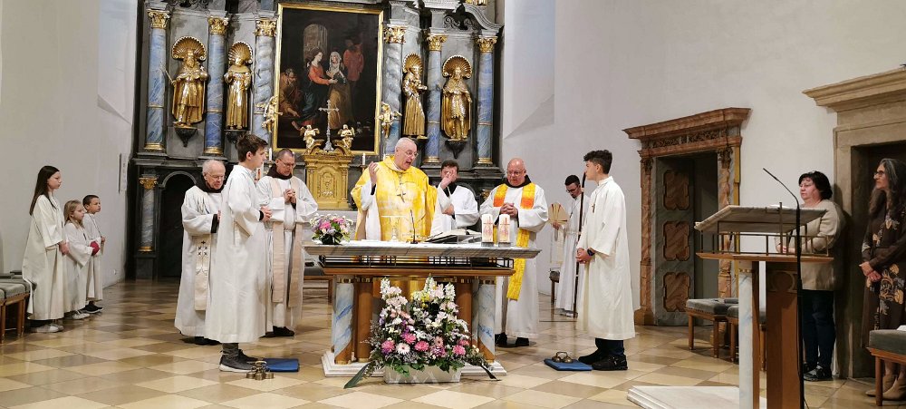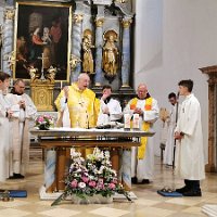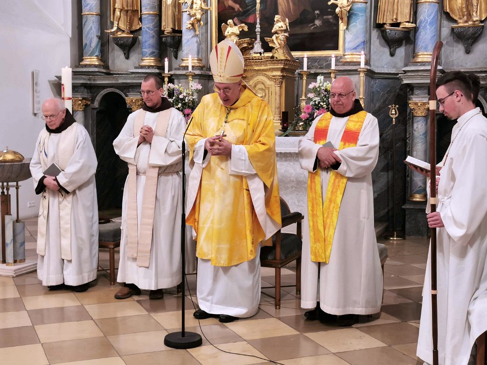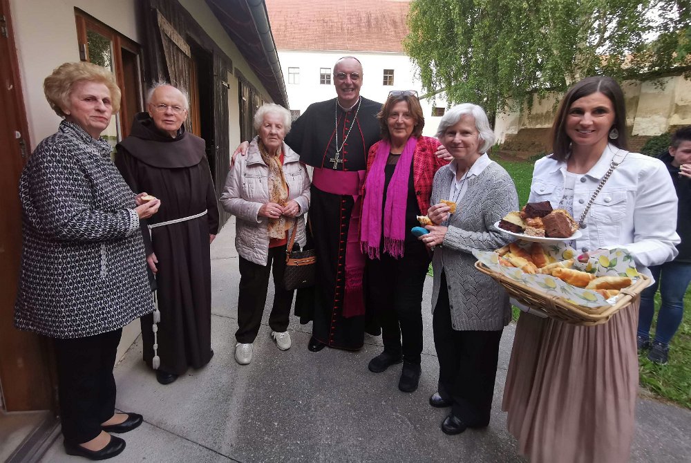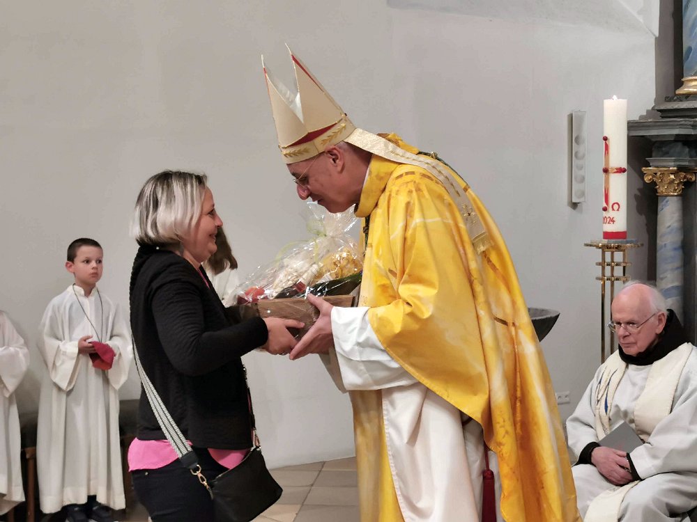 Im Anschluss daran feierte der Bischof mit der Pfarrgemeinde einen Gottesdienst und unterhielt sich danach sehr herzlich bei einer Agape im Klosterhof.