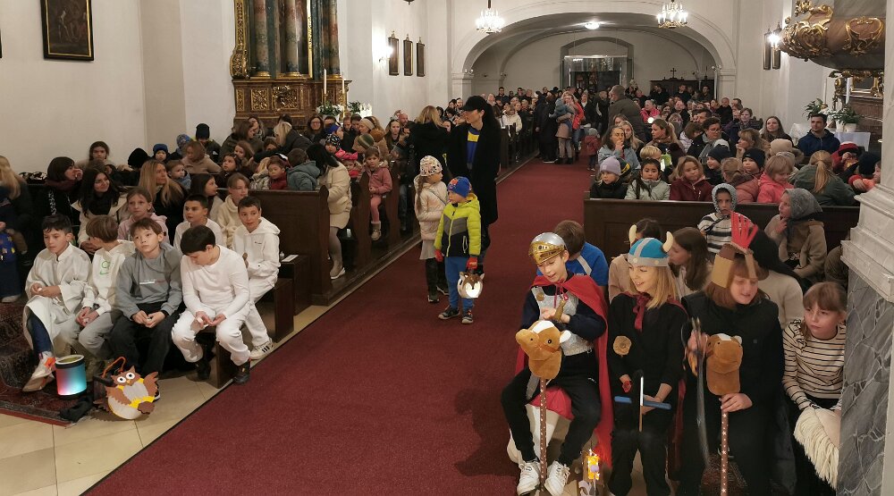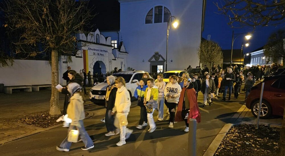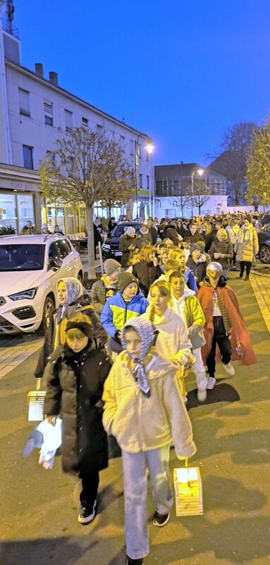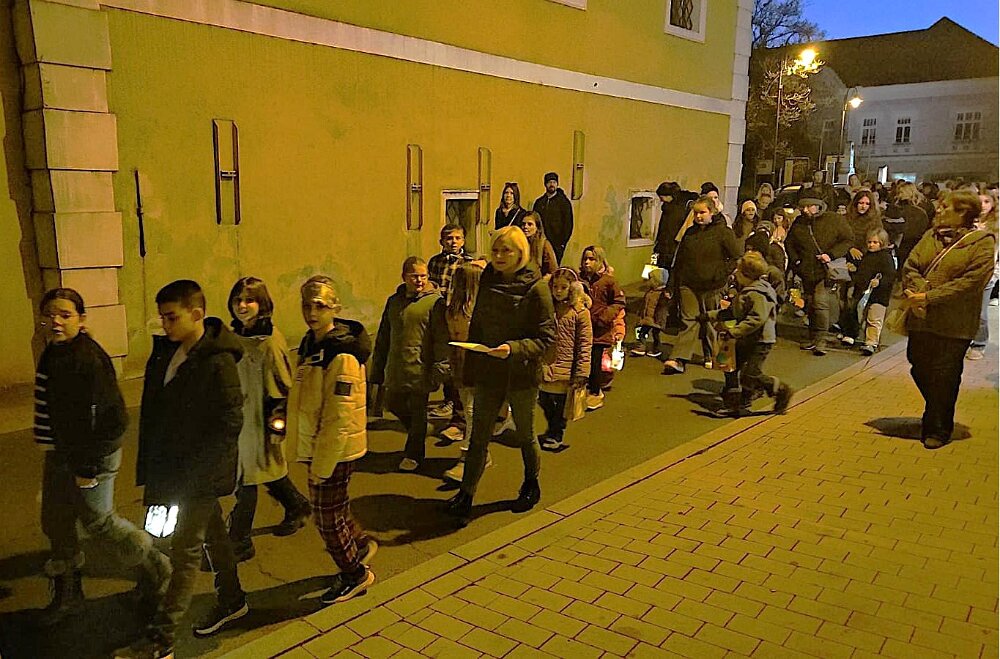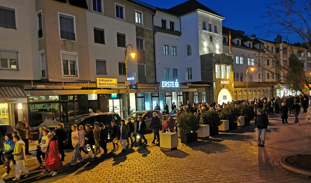 Zu Ehren des Hl. Martin versammelten sich zahlreiche Kinder am späten Nachmittag des 10. November vor der Basilika mit ihren farbenfroh gebastelten Laternen. Singend zogen wir durch die Güssinger Innenstadt.