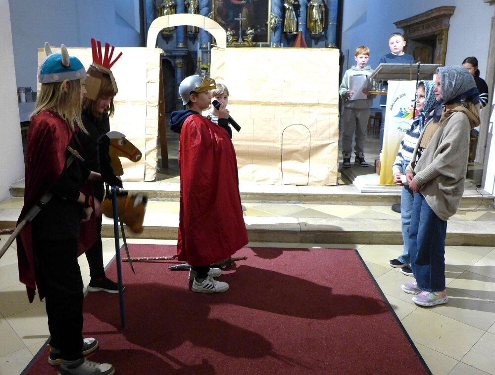 An-schließend gestalteten die Kinder der vierten Klasse der Volksschule Güssing eine Martinsfeier in der Basilika mit Martinsspiel, Liedern und Gebeten unter der Leitung ihrer Religionslehrerin Sandra Krammer. Das bereits zur lieben Tradition gewordene Teilen der Martinskipferl unter den Kindern rundete die gelungene Feier ab.