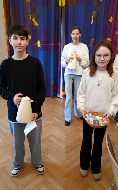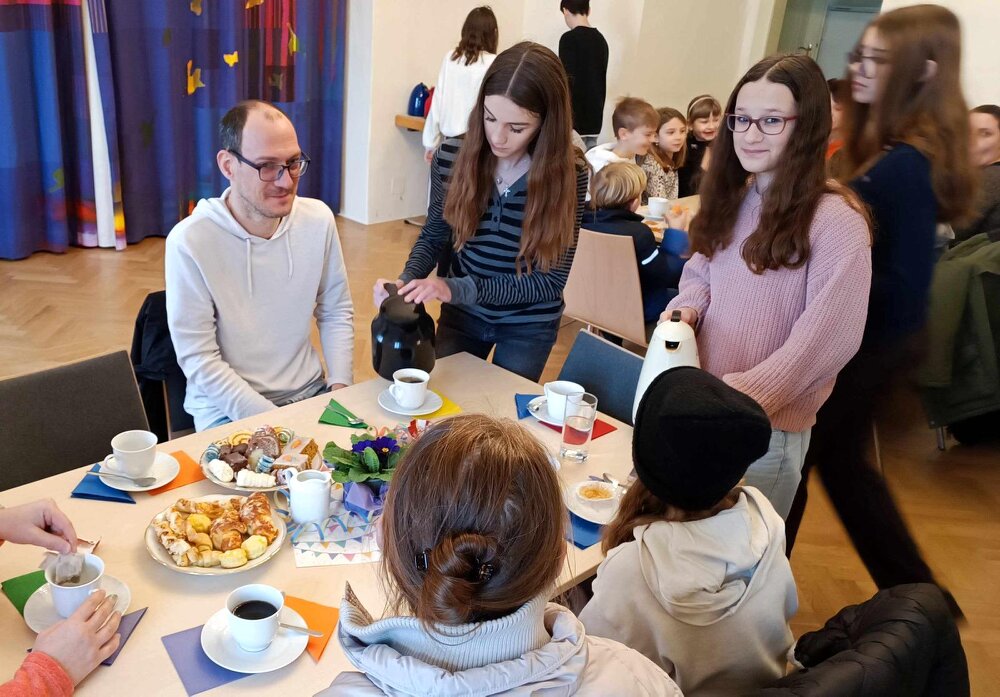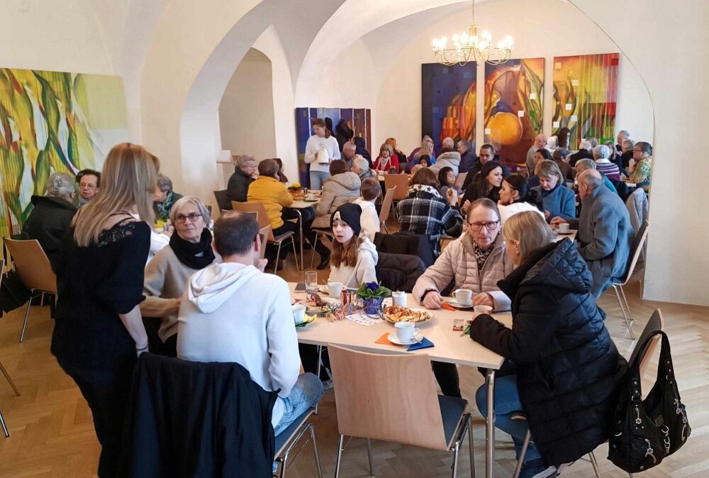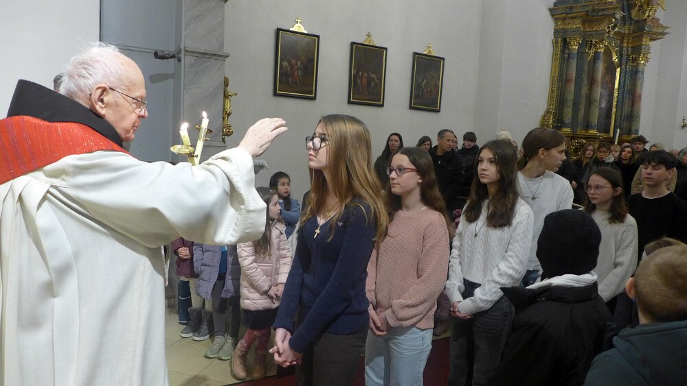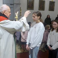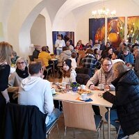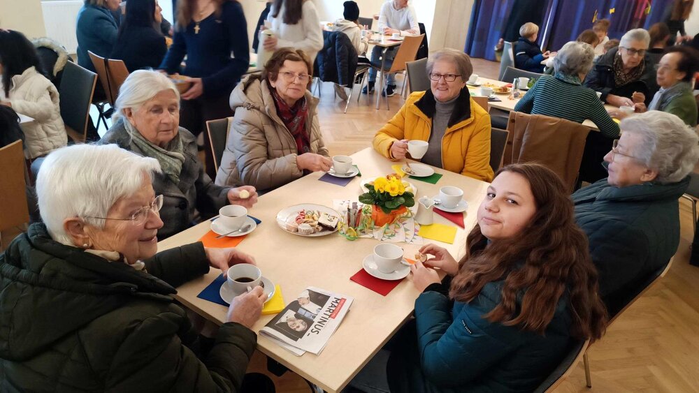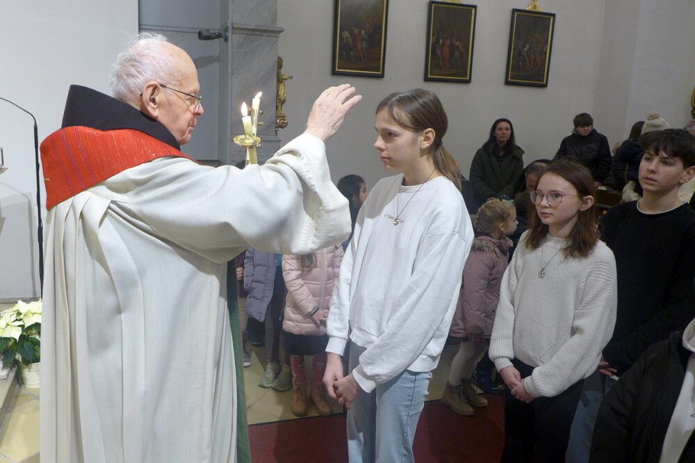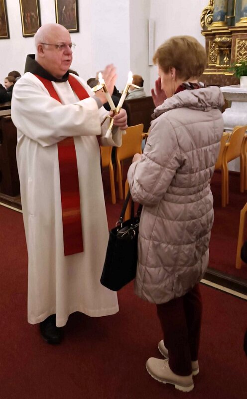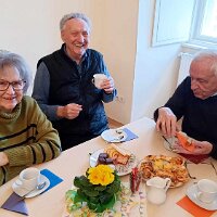 Nach dem Gottesdienst am 1. Februar wurde der Blasiussegen gespendet, danach gab es ein gemütliches Beisammensein beim Pfarrkaffee.